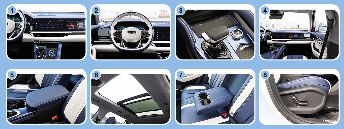 The Geely Monjaro SUV adopts a compact modular structure with a compact proportion design; the wide wheelbase of 1610mm and long wheelbase of 2845mm not only have a strong sense of presence but also have a spacious interior space.