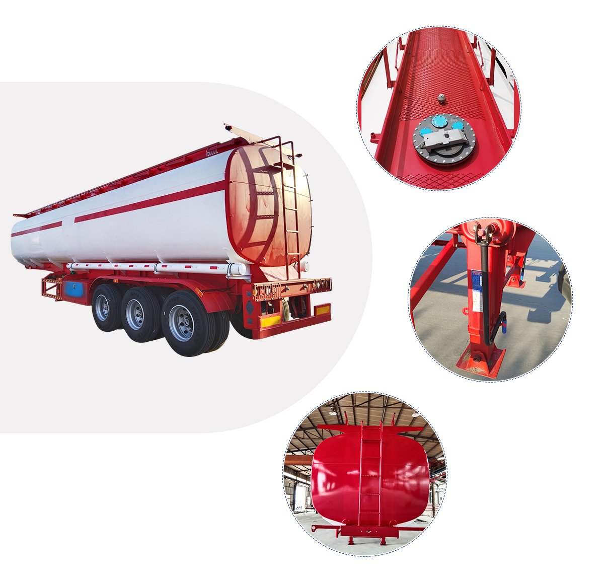 We can also produce tanker trailers for different liquids such as fuel, gasoline, diesel, crude oil, asphalt, palm oil, water, liquid chemicals, edible oil, etc.