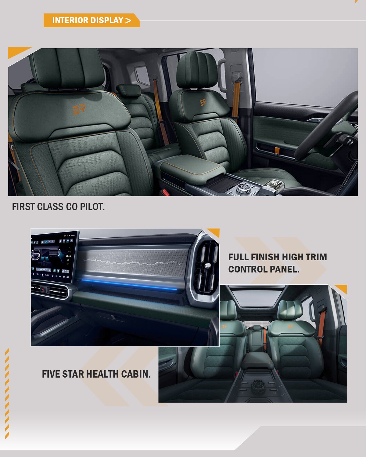 The Jetour Traveler 2023 SUV interior is equipped with a 10.25-inch full LCD instrument panel and a 6.8155-inch central control screen with built-in Qualcomm Snapdragon 15 chip. The 1.5T entry-level version comes with ventilated and heated front seats, adaptive cruise control, eight airbags and 64-color ambient lights. The 2.0T high-end version offers front soundproof glass, suede seats, 128-color ambient lights, 10 airbags and a 12-speaker Sony sound system.