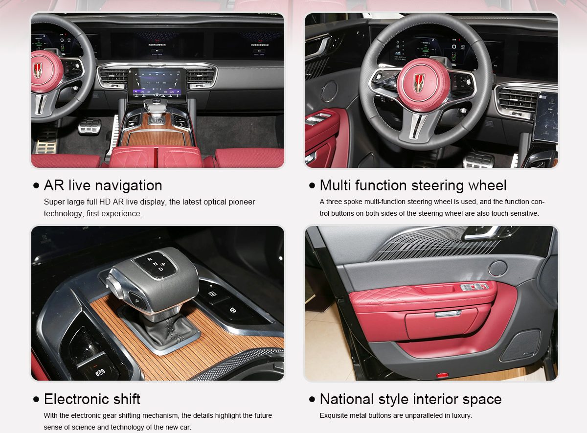 FAW Hongqi produces the E-HS9 in four-, six- and seven-seat versions. Hongqi E-HS9 2022 electric car offers exterior features such as Matrix LED headlights, flush door handles, 22-inch alloy wheels, a panoramic sunroof, and a two-tone paint scheme for the flagship SUV.